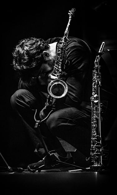 I also enjoy sharing what I learn along the way. I was a professor of saxophone and other subjects within the jazz department at the Conservatorio Superior de Málaga during the 2022–2024 academic years, and I am currently teaching at the Andalusian Center for Modern Music (CAMM).
